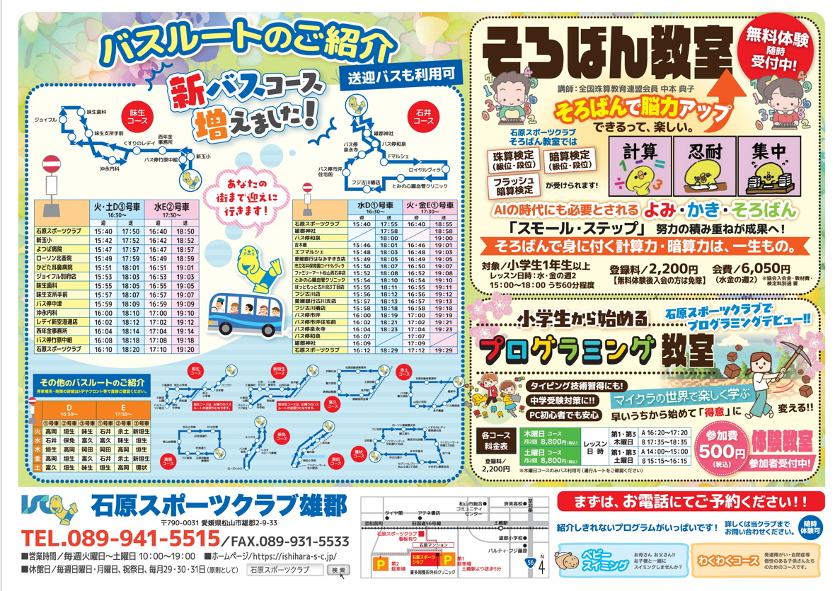 石原スポーツクラブは創立以来ずっとスポーツ・文化の総合スクールをプロデュースしております。石原スポーツクラブのスイミングは ジュニア・ベビー・育成 選手 強化・わくわく の4つのコースがあり、そろばん教室も行っています。